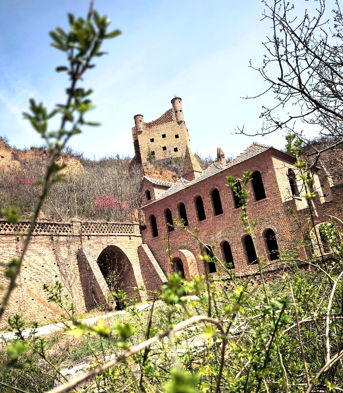 踏入棉花库,眼前青灰色山峦间忽然闯出一片红砖建筑群。这座始建于六十年代的棉花战略储备库,像一本被春风掀开的立体书册,砖缝间流转着工业时代的呼吸。春阳斜斜切过青砖拱券,在斑驳墙面上绘出深浅交织的光影图谱。