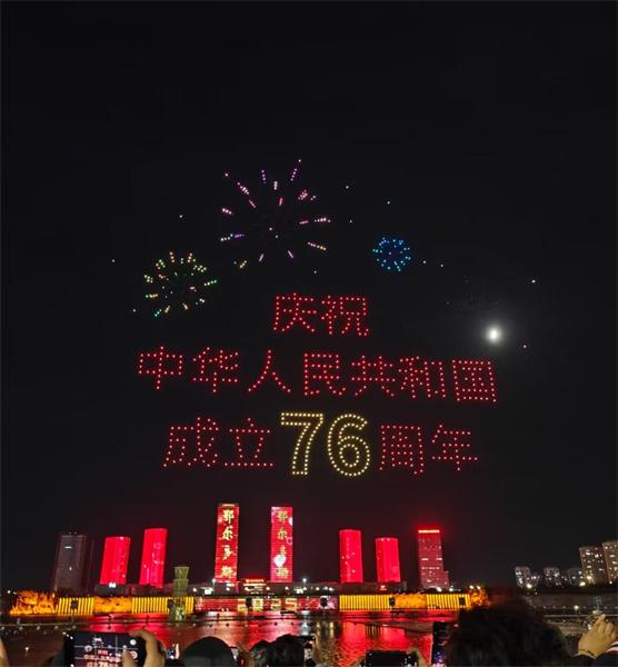 夜幕落下来时,音乐喷泉随着《我爱你中国》的旋律起舞,灯光将水柱染成浓红,一束束冲上夜空,如草原传说中守护大地的火龙,溅起的水花落在肩头,也带着暖融融的红。我抬头望去,天上的星辰被这片红晕包裹,恍如当年草原夜宿时,牧民们围着篝火唱歌,火光映红了星空,也映红了每一张脸庞;如今人间的灯火浸在这片红里,每一次呼吸,都像是沾上了跨越时空的暖 —— 是篝火的暖,是圣灯的暖,也是新时代的温度。