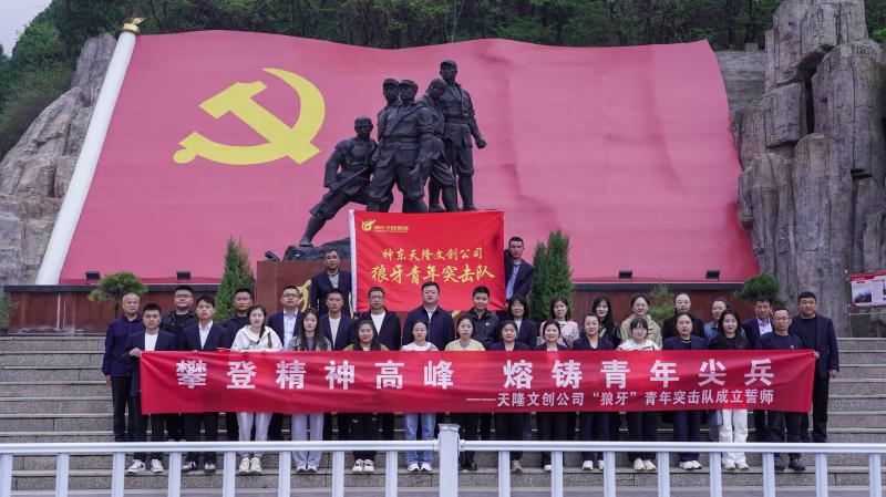 山顶五勇士纪念塔下,“狼牙”青年突击队庄严誓师宣布成立,全体党员高举右拳,铿锵有力的誓言在山谷间久久回荡。这一刻,“爱国、进步、民主、科学”的五四精神不再是文字,而是化作激荡在每个人心中的磅礴力量。激励着党员们不畏艰难,勇往直前。