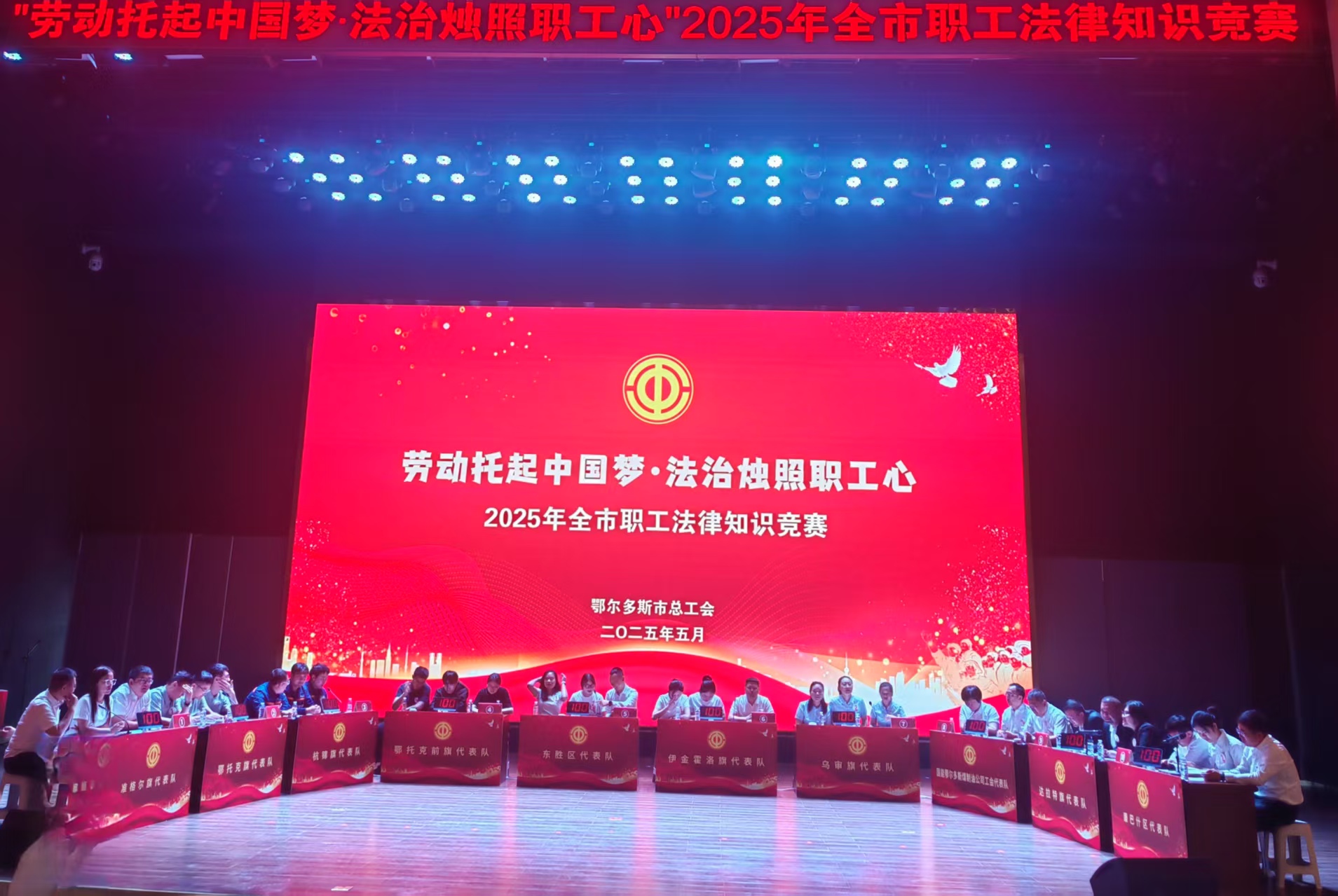 2025年5月30日,由鄂尔多斯市总工会主办的“劳动托起中国梦·法治烛照职工心”全市职工法律知识竞赛圆满结束。本次竞赛旨在深入学习贯彻习近平法治思想,提升职工法治素养,营造尊法、学法、守法、用法的良好氛围。本次竞赛吸引了来自全市各旗区、企事业单位的十个代表队参赛,各参赛队伍经过层层选拔,最终在决赛中展开激烈角逐。集团公司工会及相关部门人员现场观看了比赛。