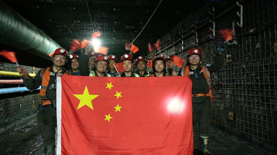 完成当班任务后,各支队伍不约而同地集结在国旗下,用镜头定格下这难忘的时刻。五星红旗在液压支架间、掘进机头前傲然挺立,这些满是煤尘却洋溢着自豪的笑脸,在鲜艳的国旗映衬下,展现着煤矿工人最美的坚守。