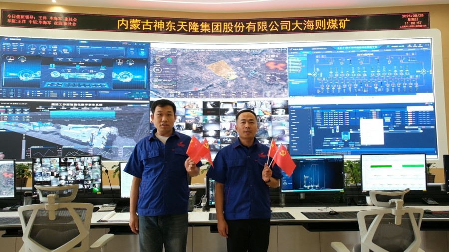 调度大厅里,调度员特别注意到,各个工作面的国旗前,工人们都在有序合影,这些画面通过监控传回地面,成为这个国庆节最动人的影像记录。