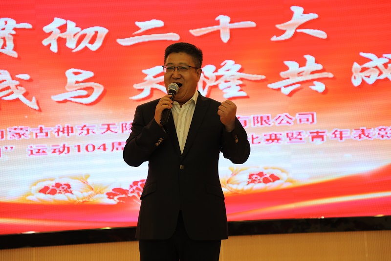 2023年5月4日,在第74个“五四”青年节到来之际,为纪念五四运动104周年,深入贯彻学习党的二十大精神,进一步加强青年员工党性素养建设,激发青年员工干事创业热情,引领青年员工立足岗位建功立业。由集团公司团委主办的 “学习贯彻二十大 我与天隆共成长”主题演讲比赛暨2022年度“五四”青年表彰会议在三楼报告厅隆重召开。集团公司党委委员、纪委书记孟光利,机关党委书记何怀东、机关党建部部长刘志荣、集团团委书记王莹,以及特邀嘉宾内蒙古音乐创作人、内蒙古音乐家协会会员 、鄂尔多斯市康巴什区音乐家协会主席、副教授张生,特邀嘉宾神东煤炭集团公司党建督导组组长、神东公司供电中心党委副书记、神东矿区第一代播音员、主持人肖砚涛和各基层单位党组织书记、团青组织负责人,受表彰的青年先进集体和个人、团员青年代表出席并参加了会议。