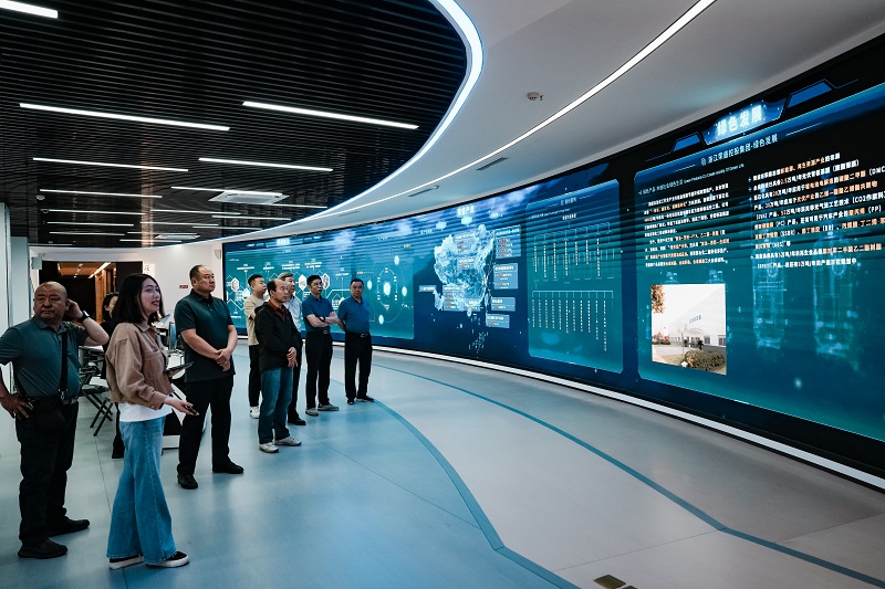 接着,考察调研组在盛元化纤工厂厂长的引领下参观了该厂从炼化、芳烃、烯烃到下游的精对苯二甲酸(PTA)、MEG及聚酯(PET,含瓶片、薄膜)、涤纶丝(POY、FDY、DTY)的完整产业链。经相关负责人介绍,了解荣盛集团每年在化工产品生产炼化中的化工精煤需求量多达1000万吨(要求神优系列)。