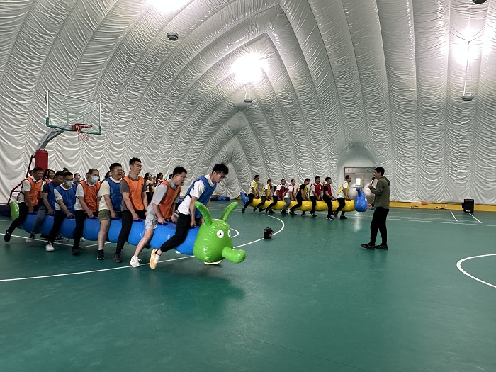 本次活动设有重走长征路、击鼓颠球、合力搭建、驿站传书、巨型麻将、光盘拔河、大战毛毛虫、四平八稳、极速挑战等项目。在重走长征路环节,通过培训老师的全面生动讲解,结合丰富多彩的各类体验游戏,让每一位学员深刻体会到了红军二万五千里长征的异常艰险,以及当今美好生活的来之不易,通过红歌赛,既调动了学员们的积极性,丰富了活动内容,又激发了学员们的爱党爱国之情,有效地提升了团队的凝聚力和战斗力。在击鼓颠球、合力搭建、驿站传书、巨型麻将等环节中,所有学员齐心合力、顽强拼搏、奋勇争先,展示出了良好企业精神和积极向上的员工团队风貌。