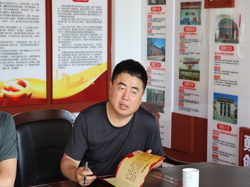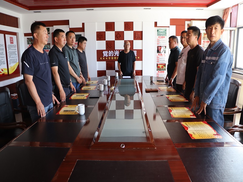 2023年6月29日上午,为深入贯彻落实党的二十大精神和习近平新时代中国特色社会主义思想,及时将习近平总书记在内蒙古考察期间的重要指示重要讲话精神传递到基层,隆重纪念建党102周年, 激发广大党员和群众感党恩、听党话、跟党走,中共内蒙古神东天隆集团股份有限公司武家塔露天煤矿委员会开展“严格执纪,以学正风 ”庆七一主题党日活动。中共内蒙古神东天隆集团股份有限公司武家塔露天煤矿委员会党委书记杨志平、纪委书记季治福、机关支部书记兼团委书记訾巧霞及七个基层党支部书记参与活动。