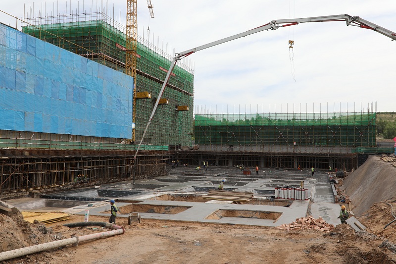 来到霍洛湾煤矿后,董事长杨飞云一行首先实地查看了充填注浆搅拌站运行管理情况,对项目部高效运行、规范化管理、标准化作业的状态予以了高度的评价。之后,深入霍洛湾煤矿新建办公楼、职工餐厅施工现场,全面了解了施工管理及项目建设进展情况,与矿领导班子及工程建设公司项目负责人进了交流,要求霍洛湾煤矿和工程建设公司要把安全管理放在首位,全面加强施工作业现场管理,严格落实各项安全保障措施,严厉杜绝“三违”行为,全面保证工程质量,确保项目建设安全有序进行。
