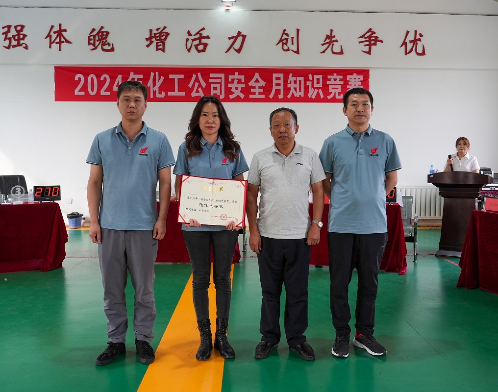 在竞赛结束时,化工公司党委书记张兴和、集团公司安质环部副经理赵海龙、化工公司分管安全的领导李成怀分别向荣获一、二、三等奖的代表队现场颁发了荣誉证书。