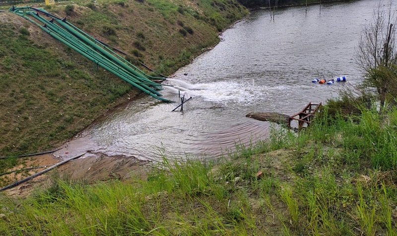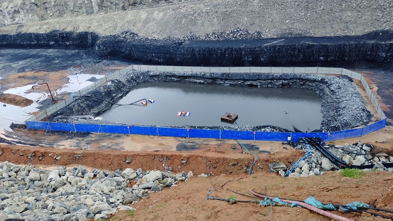 目前,矿防洪坝内安设了4台潜水泵,2台800KW流量2000m³/h水泵作为防洪泵,2台550KW流量1000m³/h潜水泵作为防洪泵备用泵。设置备用水泵排水能力不小于工作水泵排水能力的50%,采坑现有水泵排水总能力实际为1874m³/h,日排水量约为44975m³/d,排水量满足现阶段采坑涌水量;石灰沟防洪坝上游汇水面积28.38km²,预计日常降雨涌水量约为21492m³/d,通过远程水泵联合试运转表明,武家塔露天煤矿在石灰沟防洪坝设置的潜水泵排水总能力实际达到5286m³/h,日排水量达到126868m³/d,排水泵流量完全满足石灰沟现阶段汇水量。