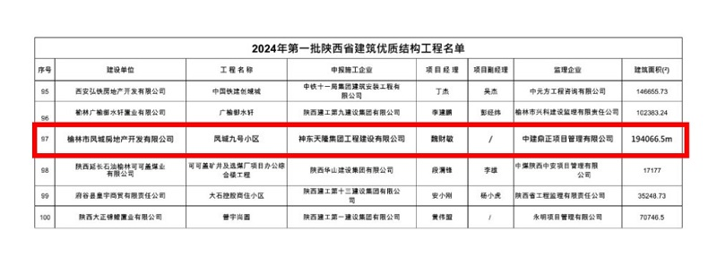 近日,从陕西省建筑业协会与榆林市住房和城乡建设局获悉,由神东天隆集团工程建设有限公司承建的榆林凤城九号项目荣获“2024年第一批陕西省建筑优质结构工程”和“榆林市2023年度第三批文明工地”双荣誉称号!此称号的获得,进一步提升了工程建设公司在陕西建筑市场的品牌形象。