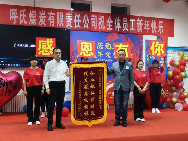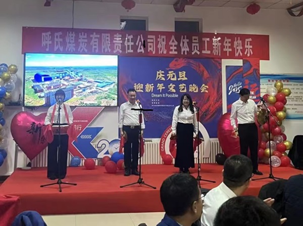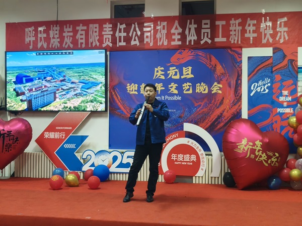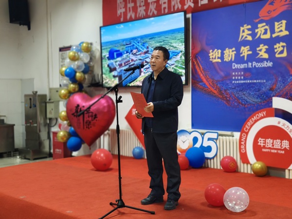 2024年12 月 30 日晚,呼氏煤炭公司“庆元旦 迎新年”文艺晚会在职工餐厅隆重举办,天隆集团公司副总经理、呼氏煤炭公司董事长朱泽阳,呼能集团公司董事长、呼氏煤炭公司总经理奇跃进与公司全体职工、淮北矿业公司淖尔壕项目部领导班子、内蒙青山助残公司代表齐聚一堂,辞旧迎新,展望未来。董事长朱泽阳致辞寄望新岁。