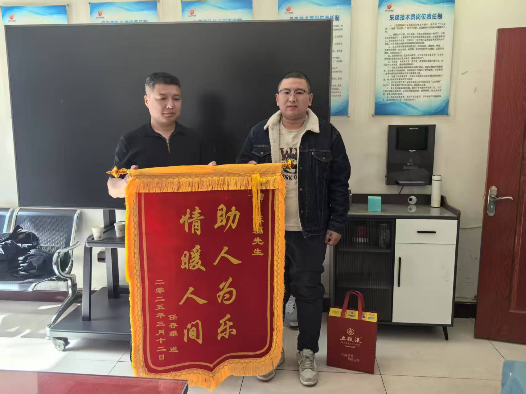 霍洛湾煤矿职工陈磊在交通事故现场挺身而出、勇救被困群众后低调离开,直到受助家属近日专程将一面写有“助人为乐 情暖人间”的锦旗及感谢信送至单位时,这一善举才逐渐被大家知晓。
