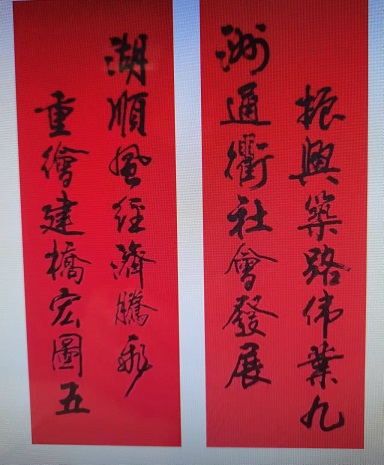 贴春联是一种年俗,既是为辞旧迎新,也赋予新的一年美好祝愿。不管旧房新房,当一幅大红对联张贴起来,立即会增添诸多喜庆气氛,也会使年的味儿变得更浓。现在很多人抱怨年味不足,关键就在于缺乏传统文化的氛围。我认为,写春联这一传统的本真文化不能丢,应该让手写对联的好传统得以回归。动手书写春联一方面可以有效整合优秀资源,让更多的书法家发挥他们的技艺,让我们的传统文化更好地发扬广大。另一方面,也可以给更多爱好书法、爱好文学的年轻人创造条件,通过开展创作春联、书写春联等活动,让人们在自编自写中自娱自乐,在浓郁的文化熏陶中放松心情、愉悦身心,让中华传统文化后继有人,香火延绵。