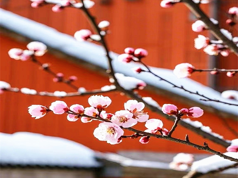 春分过后,天气说变就变,突然下起了雪,再次从那株杏树旁经过,细盐般的雪粒簌簌落在我的身上,我驻足凝望,那褐色枝条上未绽的花骨朵儿紧紧地簇拥在一起,像襁褓中婴儿攥紧的小拳头。忽然一阵风过,最高处的花苞裂开一道粉边,仿佛雪地里燃起一簇微弱的火苗。泥土的腥气混着若有若无的甜香钻进鼻腔,恍惚间竟分不清是春雪融化的气息,还是藏在花苞深处的秘密。