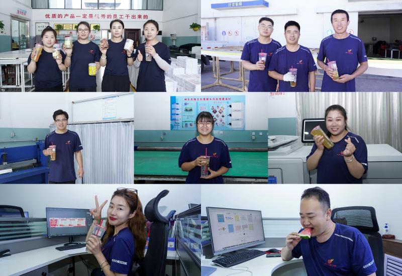 这哪是送清凉?分明是堂“创意课”:火热的日子里,也能把平凡过得妙趣横生。此时此刻,工位飘着茶香,混着果茶甜,车间的同事们干活都充满了干劲儿,这个夏天,文创公司的“清凉感”要超标咯!