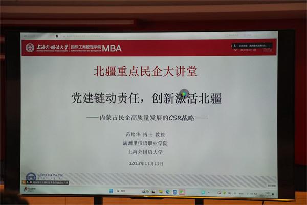 2025年11月12日下午,煤炭运销分公司组织机关党员齐聚党建活动室,集中参加了内蒙古自治区第十五期北疆重点民企大讲堂线上学习。本期课程主题为《党建联动责任,创新激活北疆——内蒙古民企高质量发展的CSR战略》,由满洲里俄语职业学院党委委员、副院长范培华担任主讲。