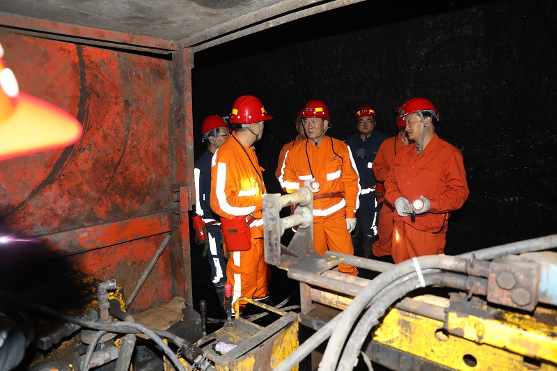 2022年7月28日,集团公司董事长杨飞云、副总经理谢伟、总工程师张雄及财务部、安全质量环保部、生产技术部、机电动力部、企业管理部负责人在霍洛湾煤矿调研。