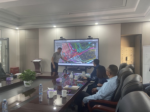 随后,在智能化会议中心召开座谈会。矿长杨旭林向总经理一行汇报了当前生产经营情况、与温家塔煤矿边界区域处剥离计划、排土现状、后续存在问题和困难等情况,集团公司分管领导和各部门负责人分别结合采坑平面图对相关问题进行指导。