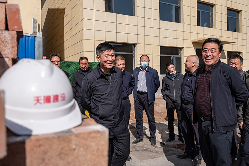 在化工公司补连塔厂区,董事长杨飞云一行察看了抑尘剂车间施工现场,针对疫情防控期间施工人员组织和材料运输受限的实际,董事长杨飞云指出,工程施工单位要想方设法组织人工和材料,保障冬季前完成厂房施工建设任务,确保抑尘剂生产车间顺利投入使用。化工公司作为神东专业化提供抑尘喷洒服务单位,必须提前谋划,科学组织,多方协调,确保神东为神东提供优质的产品和高效的服务,不得因疫情或其它因素影响供给,向神东和周边市场交出一份满意的答卷。