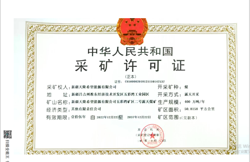 神东天隆新疆天隆希望能源有限公司五彩湾矿区二号露天煤矿《采矿许可证》顺利延续15年