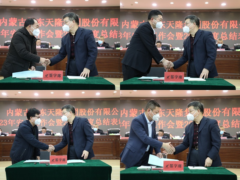董事长杨飞云说,2022年,在党的二十大精神的鼓舞下,集团公司上下克服新冠病毒疫情反复蔓延、安全形势严峻、生产成本大幅上涨等不利因素影响,全体股东和干部员工始终保持思想一致、行动一致、目标一致,牢牢把握煤炭价格持续高位运行的良好机遇,紧紧围绕完成全年安全生产经营任务目标,立制度、保安全、稳生产、抓管理、提效益,做到了上下同步、精心组织、多方协作、密切配合,实现了全年生产经营奋斗目标,经营业绩再创历史新高,位列中国能源企业500强第221位,全国煤炭企业50强第44位,内蒙古民营企业100强第17位,鄂尔多斯民营企业十强,书写了推动天隆事业稳健发展的壮阔篇章,展示了天隆人团结奋进的磅礴力量;公司董监高和党委治理构架协调运行,相互信任,相互理解,相互支持,相互补位,高效决策,有效监督,规范运营,企业步入健康发展快车道,形成共促天隆长治久安、稳健发展的良好局面;公司始终坚持“安全发展、绿色发展、智能发展”,始终把安全管理作为第一要务,严格贯彻执行年度安全工作会精神,安全、生产、机电例会月月开,安全管理天天抓,隐患整改不过夜,疫情防控不放松,持续强化安全管控和监督检查,三大直属主力矿井三年来未发生任何安全责任事故,并且持续巩固了“一级安全质量标准化矿井”“特级高产高效矿井”国家级“绿色矿山”等荣誉;煤炭主业充分发挥出了经营创效的“顶梁柱”作用,非煤产业从逐步减亏、扭亏转变为实现盈利,这是公司消除亏损攻坚战取得的一次重大突破,也是集团公司2022年生产经营工作的又一大亮点;煤矿智能化、大海则煤矿二水平延深工程、新疆天隆希望能源有限公司五彩湾矿区二号露天煤矿一期400万吨/年等项目建设有序推进,取得了喜人的发展成果。