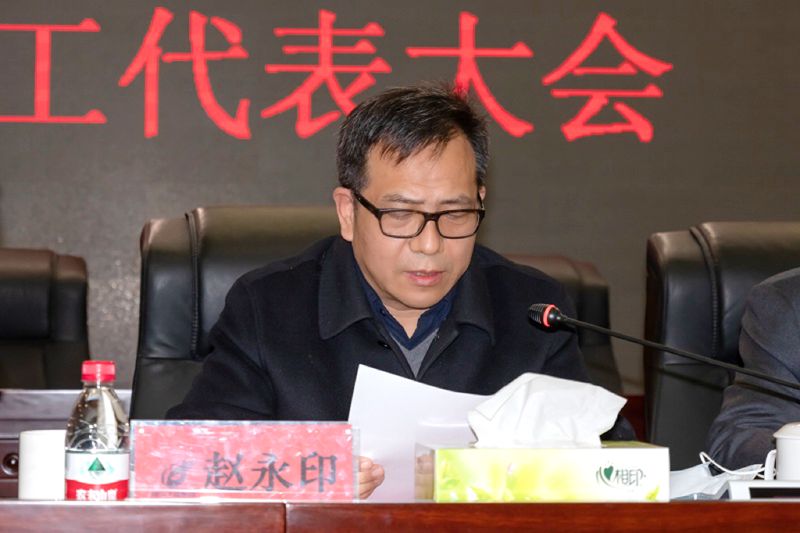 (大会执行主席赵永印宣读内蒙古神东天隆集团股份有限公司一届二次职工代表大会决议)