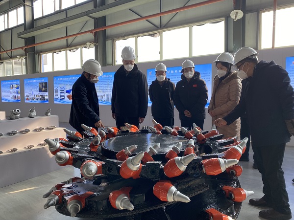 张炜一行来到神东天隆矿山机械公司车间,与企业负责人深入交流,认真听取了企业诉求,听汇报、看现场、问发展,详细了解生产经营、技术研发、工艺流程、成本效益等情况。