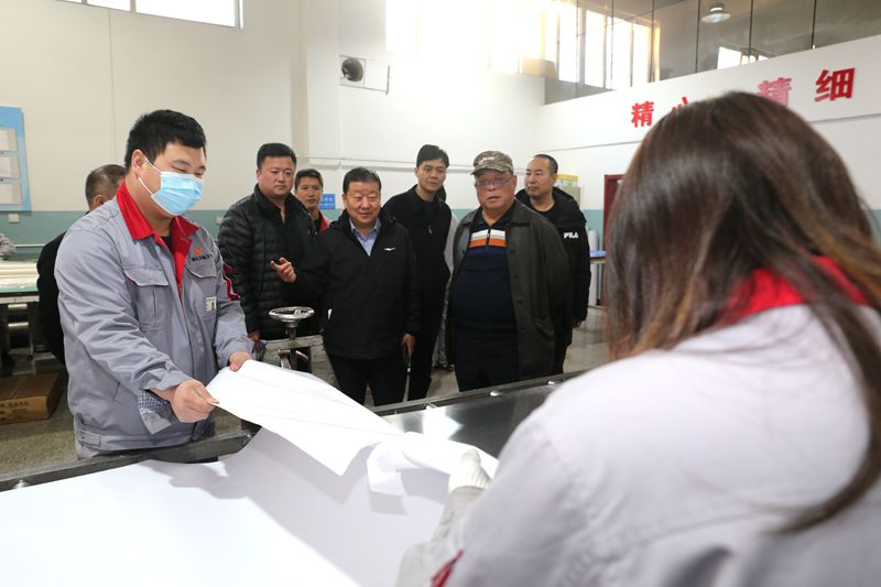 集团公司副总经理李治平在文创公司产品生产车间认真向文创领导班子了解车间产品情况,并与文创公司和陕煤澄合多种经营公司共同期盼未来在相同领域开展共赢合作,促进天隆事业发展。