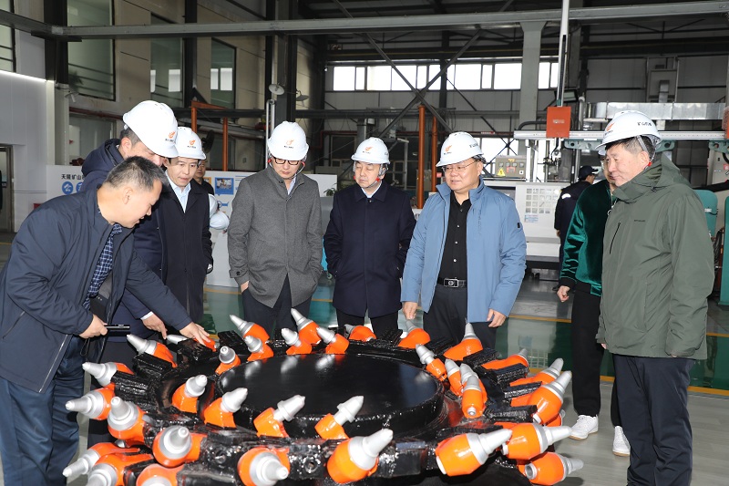 2023年2月22日,伊金霍洛旗人民政府副旗长李贵及旗工业与信息化局、蒙苏经济开发区相关负责人一行来到伊旗天隆工业园区考察调研。在集团公司董事长杨飞云、副总经理李治平及矿山机械公司、煤机维修公司负责人的陪同下,李贵副旗长一行实地察看了矿山机械公司截齿生产车间、智慧工厂控制中心及煤机维修公司采掘设备维修车间、机械加工生产车间,深入了解了两家企业生产运营情况。
