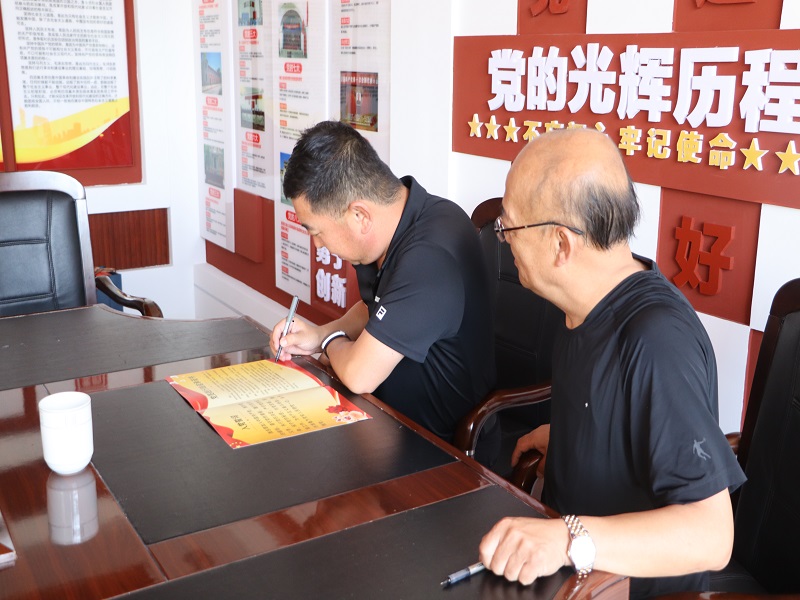 “我志愿加入中国共产党,拥护党的纲领,遵守党的章程……”在进一步领悟重要精神后,党委书记杨志平带领全体参加活动的党员高举右拳铿锵恢宏、掷地有声的重温入党誓词,表达对党的无限忠诚和敬意,以坚定有力的宣誓表达永远跟党走、奋进新征程的坚定信念和决心。并在组织下各基层党支部书记签订党员践行践诺承诺书,承诺在工作中积极响应党的号召,服从党的决议,强化自身党性修养,保持思想先进性,增强党员责任感与工作能力。