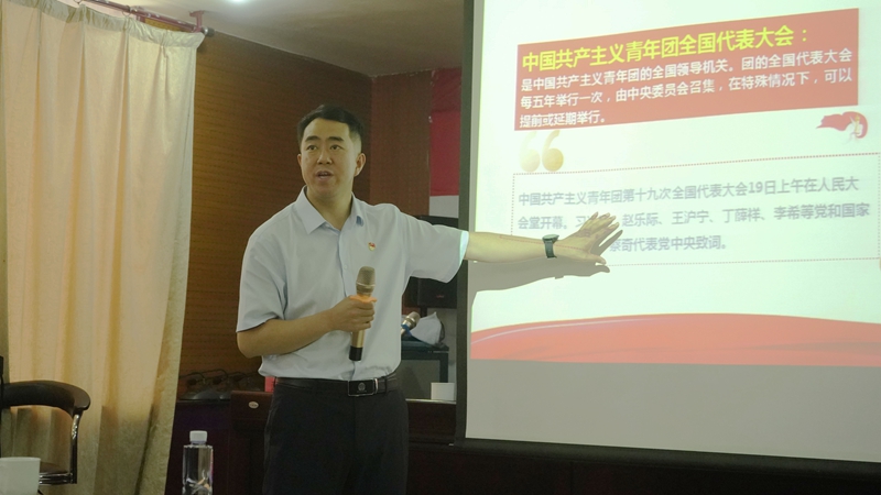 本次学习邀请了神木市委宣讲团成员、神木青年讲师团讲师、神木市政协委员、神木市团代表、神木市监察委员会特约监察员、神木市法院人民陪审员管理委员会副主任赵志鹏老师,进行授课。赵老师从学习贯彻习近平总书记在听取陕西省委和政府工作汇报时、6月份在内蒙古巴彦淖尔市考察时的重要讲话精神,以及学习贯彻中国共产主义青年团第十九次全国代表大会精神进行了2个专题的详细讲解。3个小时的学习时间里,赵老师深入浅出,详细而准确的传达习总书记的重要指示和重要讲话精神。在传达团十九大精神时,赵老师从团十九大基本情况、会议召开的背景、会议议程以及学习共青团十九大精神四个方面进行了阐述。