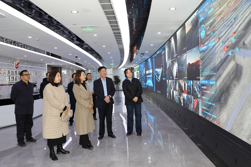 调研组一行实地察看了集团公司智慧综合调度中心,董事长杨飞云结合智能化调度中心实时动态信息向来宾详细介绍了企业经营发展和主题教育工作开展情况,并与旗委常委、统战部部长王斯庆一行在五楼会议室召开了政企座谈会议。