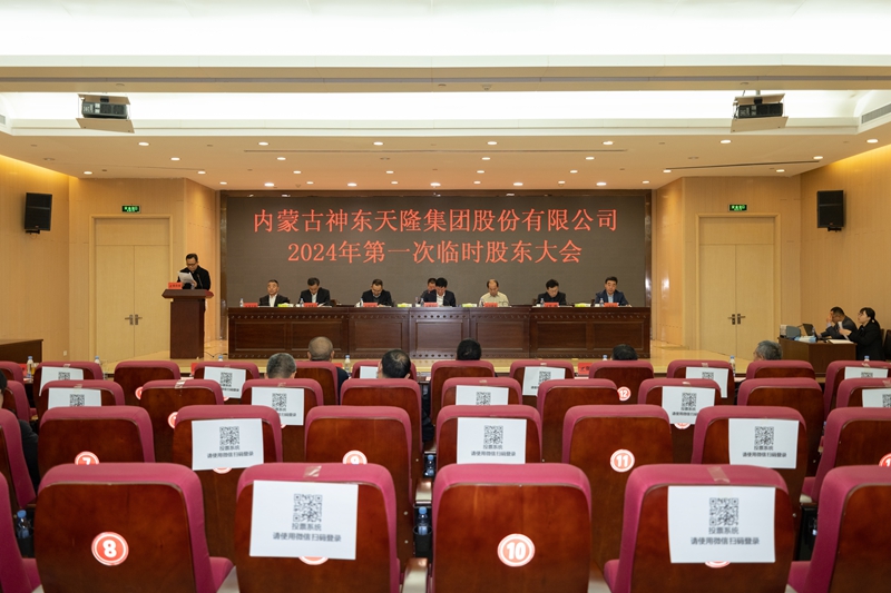 2024年1月5日,集团公司公司总部三楼报告厅召开了2024年第一次临时股东大会。董事长杨飞云出席并主持会议,副董事长白晓光,董事、总经理何广东,监事会主席贾峰,董事、常务副总经理兼总经济师胡贵元,董事、副总经理侯振江,财务总监齐立忠,副总经理赵永印、王金虎、朱泽阳、张雄,工会主席石雄山,党委副书记、纪委书记孟光利,董事会秘书尚志凯,职工监事杨万生出席了现场会议。出席会议的股东(包括股东授权代表)共1029人,出席会议股份总数为195956698.41股,会议的召集和召开符合《中华人民共和国公司法》和《内蒙古神东天隆集团股份有限公司章程》相关规定。