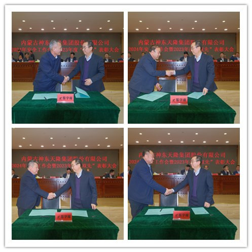 董事长杨飞云从战略高度就抓好2024年安全生产和重点任务作了重要讲话:一是安全为天,生命至上,持续提升安全生产管理水平。要不折不扣地学习贯彻《安全生产法》、《煤矿安全作业规程》等相关法律法规和制度文件精神。要落实责任,形成人人管安全的良好氛围。要强化安全培训教育,提升全员素质。要以科技兴安,加快煤矿信息化、智能化建设;全面提升质量标准化水平,突出重点,对重点单位、关键部位进行严防严管,对各项工作要有进度安排和质量要求。二是抢抓机遇,增收创效,不断推动企业持续稳健发展。2023年,受煤炭保供限价政策影响,煤源地坑口价倒挂,经过全体天隆人的共同努力,圆满的完成了生产经营各项任务目标,经营业绩喜人,为集团公司持续稳健发展进一步夯实了基础;在市非公党工委、神东煤炭集团的正确领导和鼎力支持下,顺利完成了董事、监事、党委换届工作;集团各项重点项目建设进展有序;幸福企业建设成效显著;创新驱动力逐步显现。2024年,市场煤价走势将趋下行,逐步回归合理,完成全年生产经营目标压力巨大。我们要充分认识到形势的严峻性,充分做好“过紧日子”的思想准备,全面加强日常经营管理,切实推动降本增效、技术创新等卡脖子工作,积极应对煤炭市场下行带来的机遇与挑战,全力创造更为优异生产经营业绩。三是承前启后,继往开来,全面抓好2024年重点工作。2024年,是中华人民共和国成立75周年,是国家实施“十四五”规划的关键一年,是集团公司成立20周年,是新一届董监高班子成员的开局年、奋斗年。我们要围绕中央经济工作会议“稳中求进,以进促稳,先立后破”的总基调,以自治区经济工作会议“闯新路,进前列”办好两件大事、鄂尔多斯市“三个四”工作任务为抓手,全面依法完善公司治理,董事会、党委、监事会、高管层协调运作,目标一致,思想一致,行动一致,未雨绸缪,团结和带领广大干部员工共同发力,奋力实现全年各项奋斗目标。公司战略构想是:“举全企之力,实施资源收储战略;投资性能源、新材料高科技新兴产业;依靠创新驱动产业转型升级,改革改制创新商业模式,淘汰落后业态,整治僵尸企业;加快重点项目建设、制度建设、品牌建设;以党建引领企业文化建设;加强干部队伍梯队建设,靠人才强企;推动“新三板”挂牌上市,整合利用社会资源做大做强天隆基业;凝聚全体天隆人的创造力,增强企业竞争力,提升企业影响力,打造一个安全、智能、绿色、富强、幸福、和谐的现代能源企业。