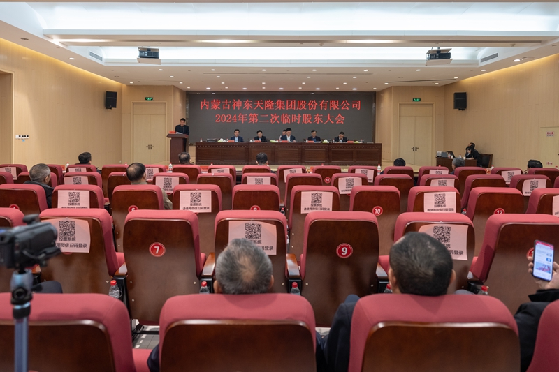 2024年2月21日,集团公司在总部三楼报告厅召开2024年第二次临时股东大会。集团公司董事长杨飞云,监事会主席贾峰,董事、常务副总经理兼总经济师胡贵元,董事、副总经理侯振江,财务总监齐立忠,副总经理赵永印、谢伟、朱泽阳、张雄,工会主席石雄山,党委副书记、纪委书记孟光利,董事会秘书尚志凯,监事高永杰、杨万生出席了现场会议。出席本次临时股东大会的股东(包括股东授权代表)共1086人,出席会议股份总数为201485252.53股。会议的召集和召开符合《中华人民共和国公司法》和《内蒙古神东天隆集团股份有限公司章程》相关规定。