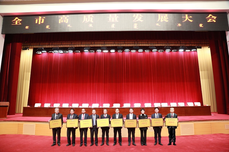 2月23日,全市高质量发展大会在康巴什国际会展中心900人报告厅召开。会议首次公布了2024年度全市民营企业10强名单,集团公司位列全市第十名,董事长杨飞云作为民营企业家代表参加会议并上台领奖。