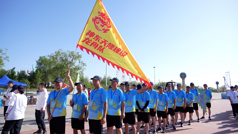 在收到鄂尔多斯市康巴什区人民政府的邀请函后,工程建设公司高度重视此次赛事。从收到比赛通知,到组织选拔队员,克服了一线生产压力大、集中训练时间短等因素,短时间内组建了一支由23名队员组成的神东天隆工程建设龙舟队,积极配合主办方做好赛前集训等各项工作。根据组委会安排,队员们仅仅培训了两次,在每次培训中,队员们无惧酷暑提前赶到培训现场,培训中队员们认真听教练讲解每一个细节,试划中,大家奋力挥动船桨,动作整齐划一,展现出高度的默契和团队精神。