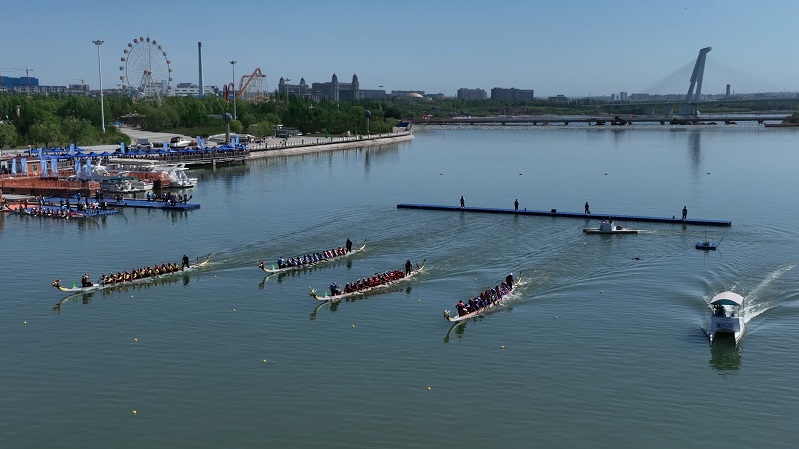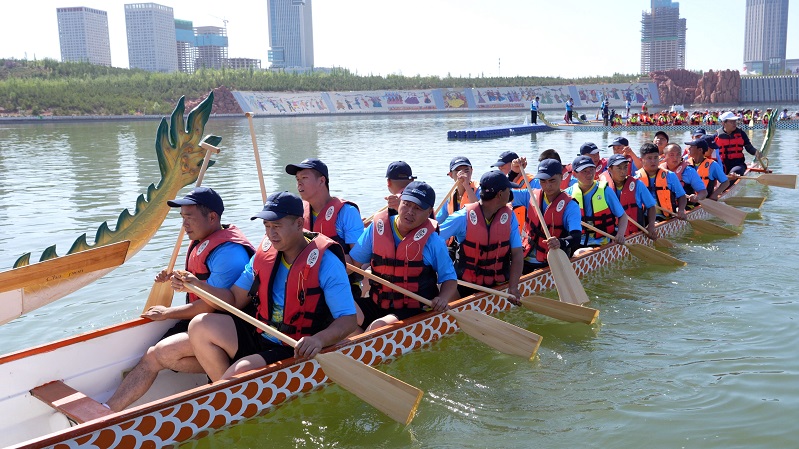 飞溅的浪花,飞舞的龙旗,飞驰的龙舟,震耳欲聋的锣鼓声、呐喊声响彻乌兰木伦湖畔。6月9日上午,工程建设公司组织员工参加了鄂尔多斯市康巴什区人民政府举办的“龙年赛龙舟、‘粽’情端午节”——2024鄂尔多斯端午文化节暨鄂尔多斯市首届龙舟邀请赛。本次比赛分为200米直道竞速赛男子组、男女混合组和迷你龙舟赛两个项目,共有31支参赛队682人参赛。
