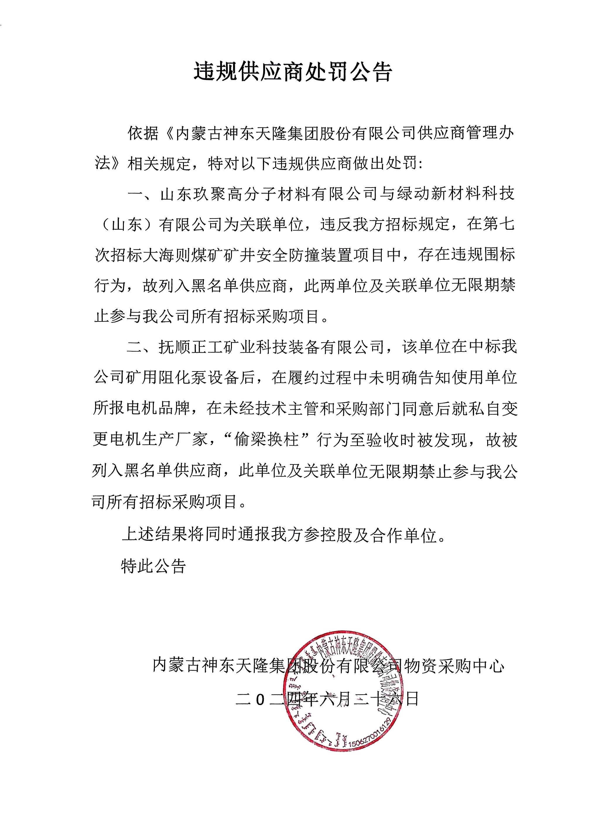 违规供应商处罚公告