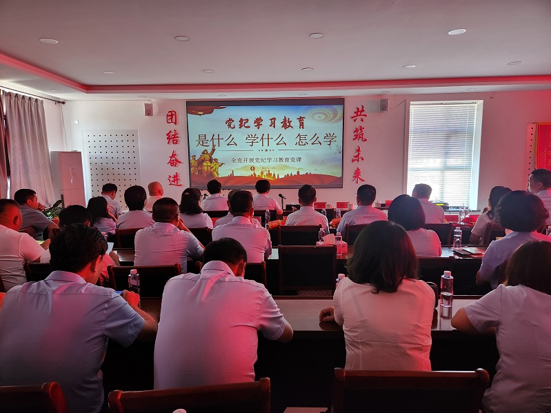 党委书记兼副总经理杨鹏燕介绍了《中国共产党纪律处分条例》的修订背景,从党纪教育“是什么、学什么、怎么学”三个方面入手,全面回顾了党的百年奋斗中纪律建设的发展历程,她指出党的十八大以来,我们党先后3次修订了《中国共产党纪律处分条例》,党纪的每一次修订和完善都充分体现了党坚持自我革命的政治决心,释放出全面从严治党越来越严的强烈信号。深刻阐述了加强党的纪律建设的重大意义、党纪学习教育在纪律体系建设中的重要作用、搞清楚党的纪律规矩是什么,弄明白能干什么,不能干什么,始终做到忠诚干净担当。她表示,当前党支部全体党员要将《中国共产党纪律处分条例》的学习作为一项重要的政治任务,切实抓好《中国共产党纪律处分条例》的贯彻执行。并就做好下一步工作提出了四点要求:一是要求全体党员干部要以党纪学习教育为契机,坚持原原本本、逐章逐条、联系实际学好《条例》;二是党员做好学习笔记,通过学习教育常对照、常反思;三是通过党纪学习教育强管理、强监督,将学习内容作为年终评优选先的重要依据;四是学纪、知纪、明纪、守纪,使党员领导干部树立正确权力观,公正用权、依法用权、为民用权、廉洁用权。