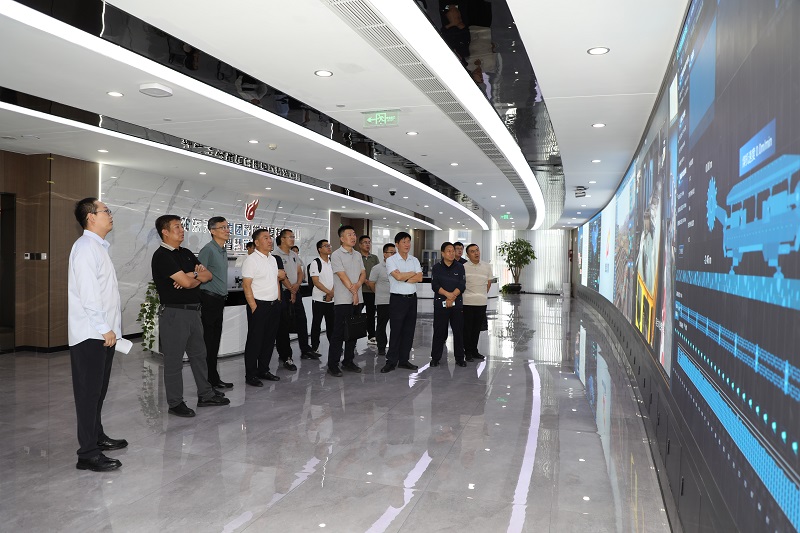 市工商联主席、市总商会会长聂永胜一行参观了集团公司5楼调度指挥中心。集团公司董事长杨飞云结合智能化调度中心平台实时动态显示数据,向来宾详细介绍了公司历史沿革、产业结构、股权结构、经营效益、资产负债、煤炭产量、智能化建设等情况。