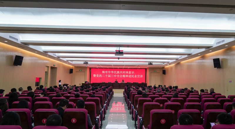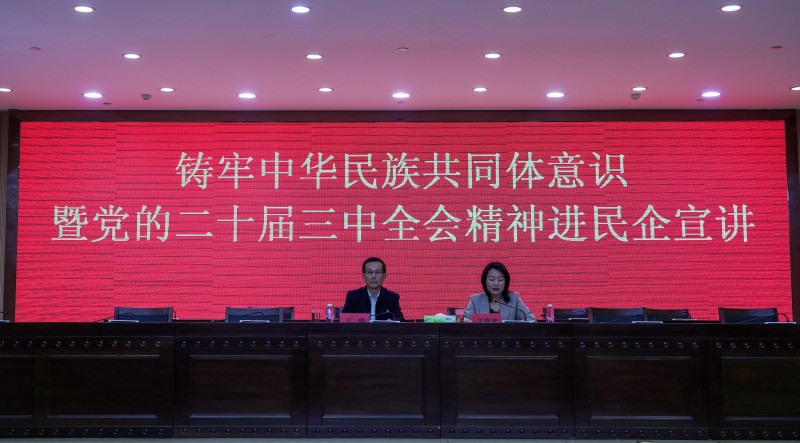 2024年9月11日上午,伊金霍洛旗统战部、旗工商联联合在集团公司三楼报告厅举办了“铸牢中华民族共同体意识谱写中国式现代化的新篇章暨党的二十届三中全会精神进民企”专题讲座。旗委常委、统战部部长王斯庆主持并讲话。集团公司在家领导、机关全体工作人员,各基层单位班子成员、基层党组织党支部书记,以及乌兰集团、呼能集团等部分民营企业代表共260余人参加了此次讲座。