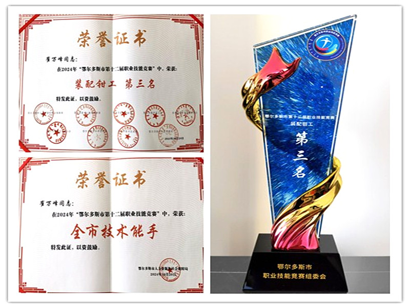 经过三天的激烈角逐,包头市、呼和浩特市、鄂尔多斯市分别获得团体总分前三名,煤机维修公司员工崔万峰代表鄂尔多斯市参赛并凭借精湛的技能取得装配钳工项目第四名的优异成绩。