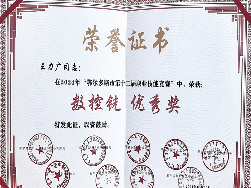 煤机维修公司员工再次展现了出色的技能水平,王力广获得数控铣项目第二名,荣获“全旗技术能手”、“伊金霍洛旗青年岗位能手”荣誉称号,并获得8000元奖金奖励;蒋益琛获得钳工项目第三名,荣获“全旗技术能手”、“伊金霍洛旗青年岗位能手”荣誉称号,并获得5000元奖金奖励;祁星晨获得数控车项目优秀奖。