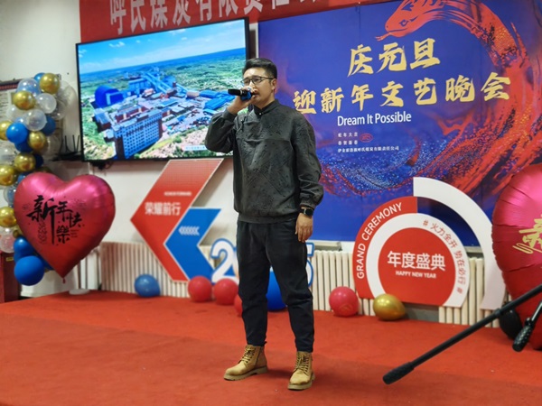 2024年12 月 30 日晚,呼氏煤炭公司“庆元旦 迎新年”文艺晚会在职工餐厅隆重举办,天隆集团公司副总经理、呼氏煤炭公司董事长朱泽阳,呼能集团公司董事长、呼氏煤炭公司总经理奇跃进与公司全体职工、淮北矿业公司淖尔壕项目部领导班子、内蒙青山助残公司代表齐聚一堂,辞旧迎新,展望未来。董事长朱泽阳致辞寄望新岁。