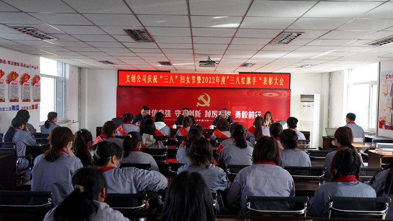 阳春三月桃花开,春意盎然阳光媚。时值“三八”国际妇女节来临之际,为致敬巾帼力量、表彰先进,3月7日下午,文创公司在二楼会议室召开纪念“三八”国际妇女节暨2022年度先进女工总结表彰会。会议由党支部书记兼副总经理谢海军主持,公司总经理刘雄、副总经理卜崇浪以及公司全体女工参加了会议。